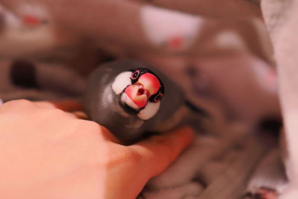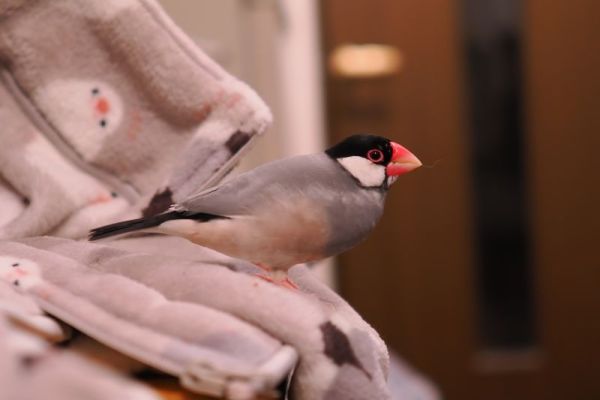朝の散歩が終ったら、我が家の文鳥と留守番です